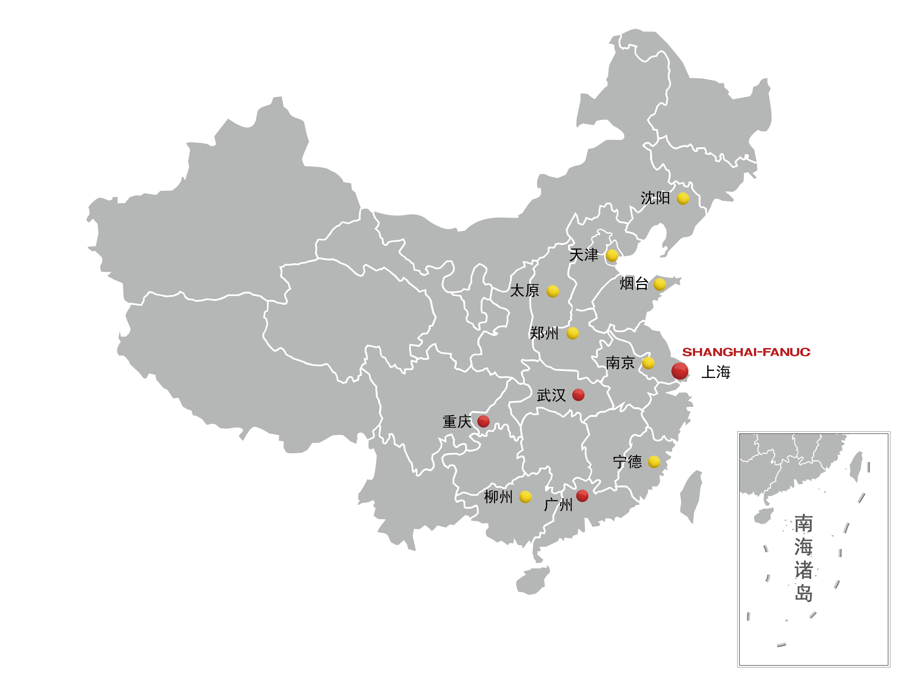 在中國,上海發那科有限公司于2002年建設了自己的廠房后,2019年在廣州、重慶、武漢成立子公司,又分別在天津、鄭州、南京、沈陽、煙臺、柳州、太原等多地設立了分公司,向國內客戶提供及時的服務。