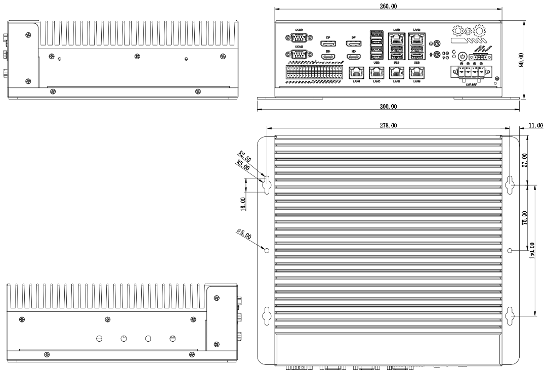 鋁型材主體,鐵灰色;無風扇設計,無排線設計